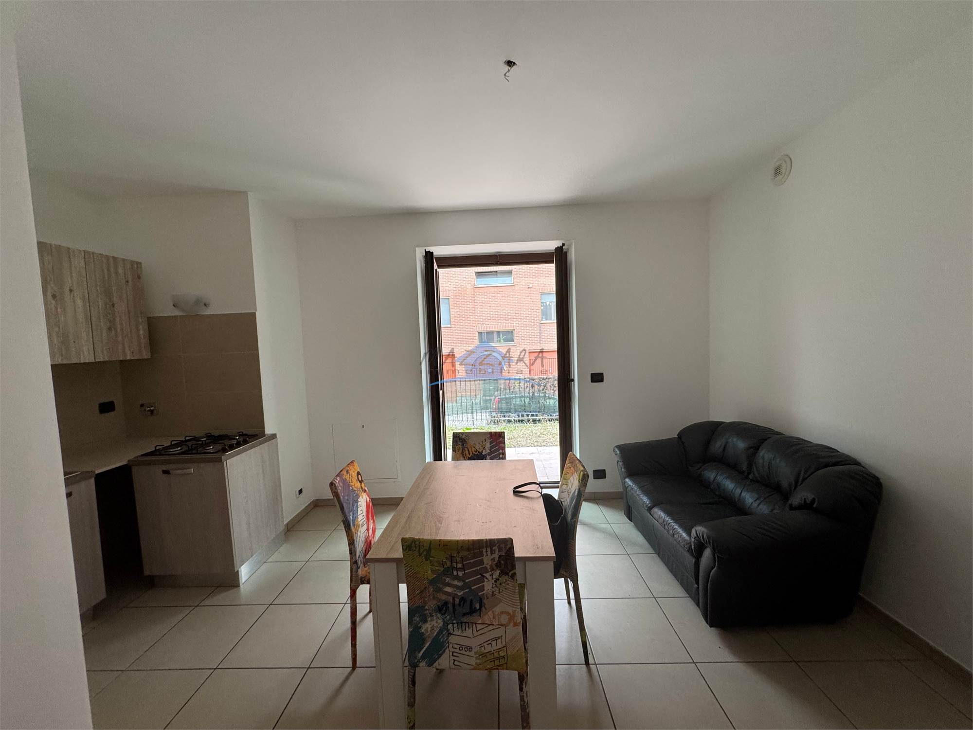 ingresso su soggiorno con angolo cottura,