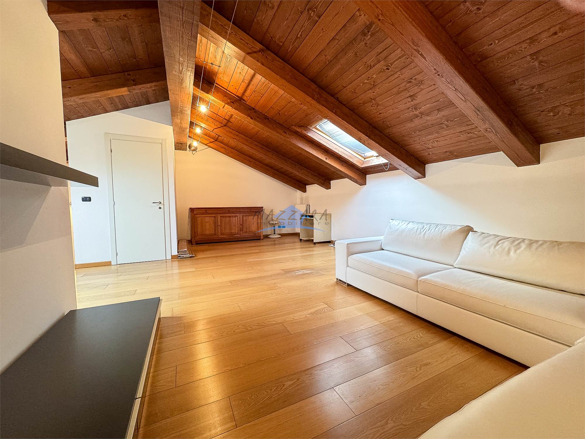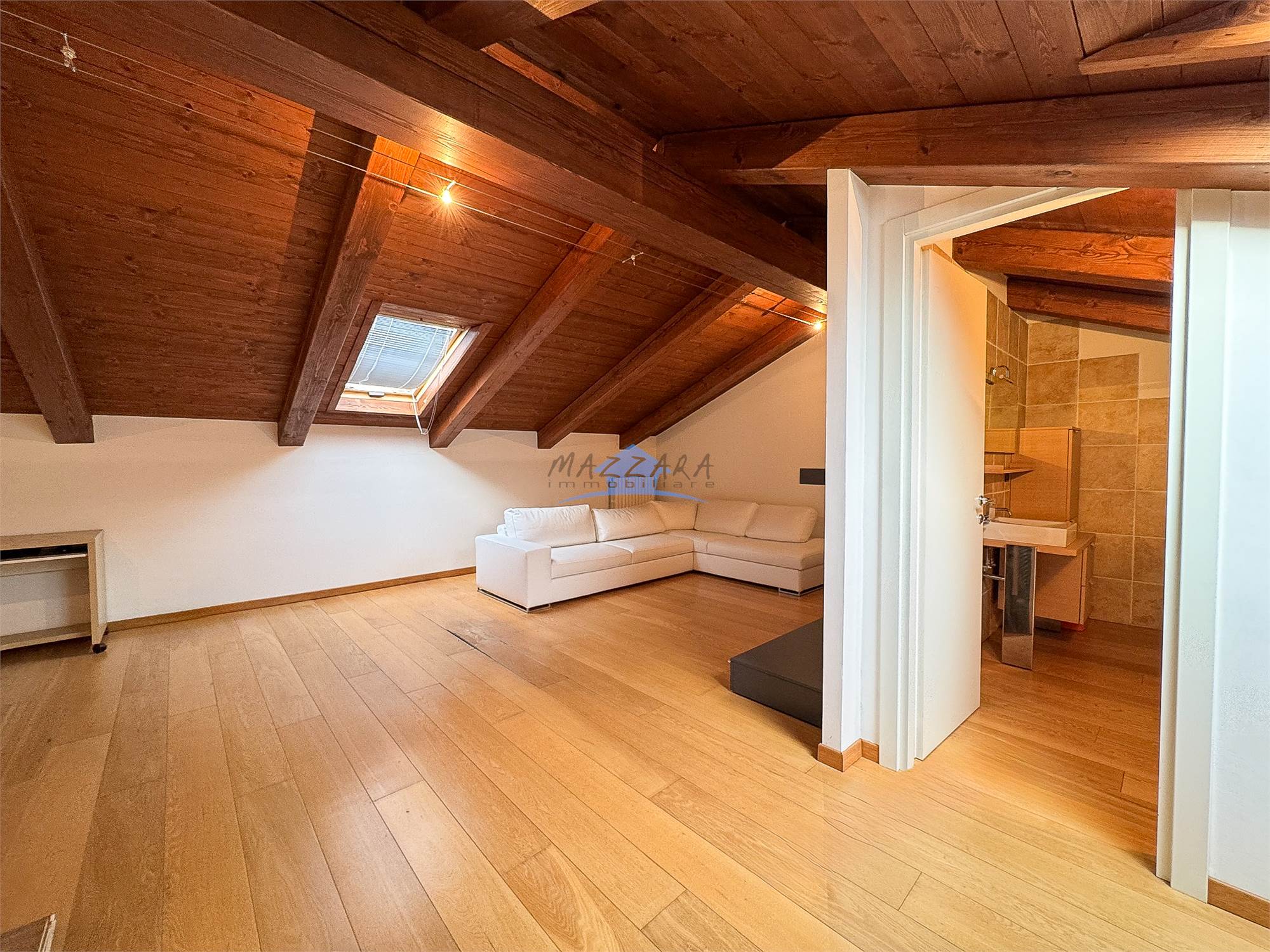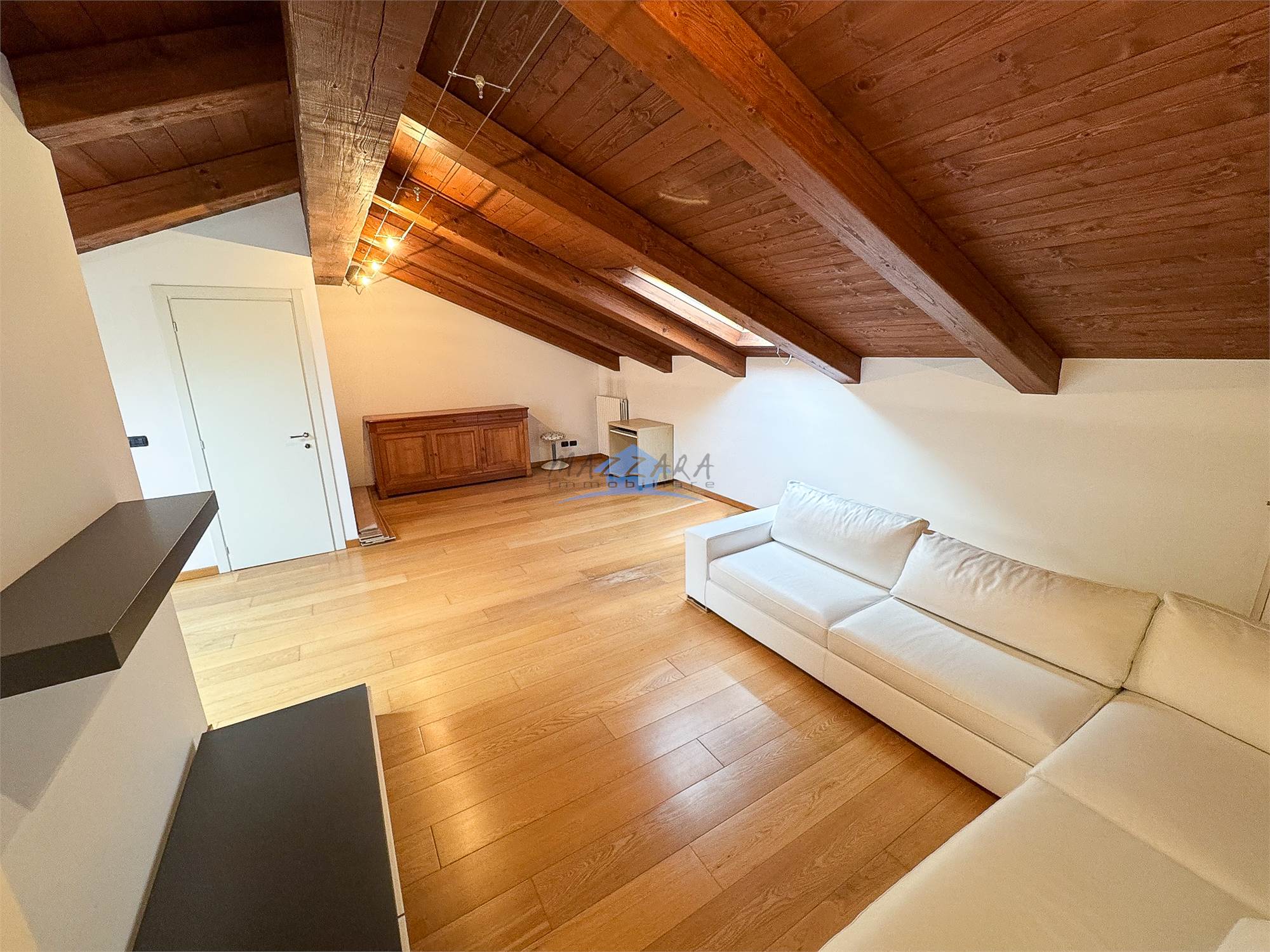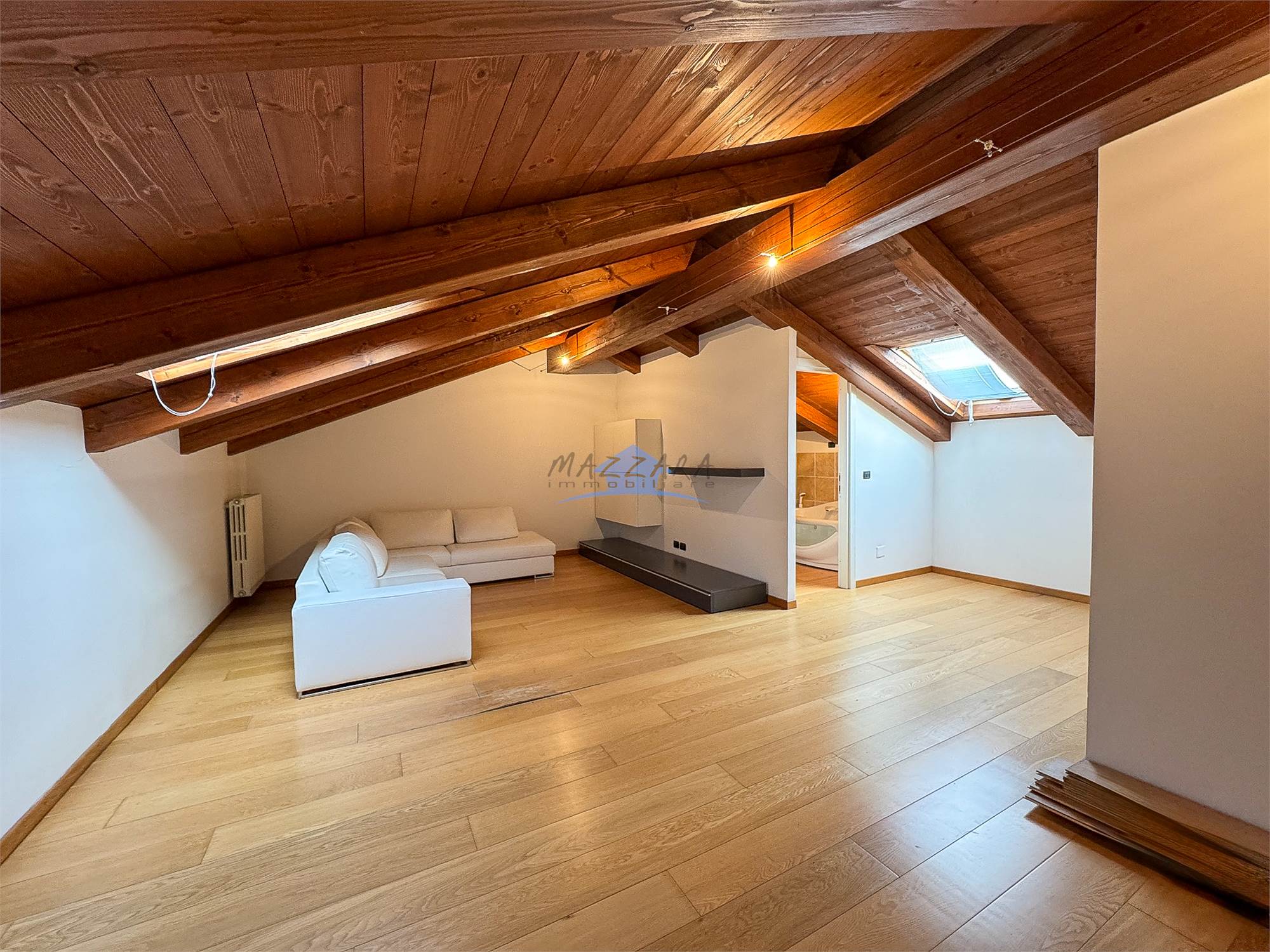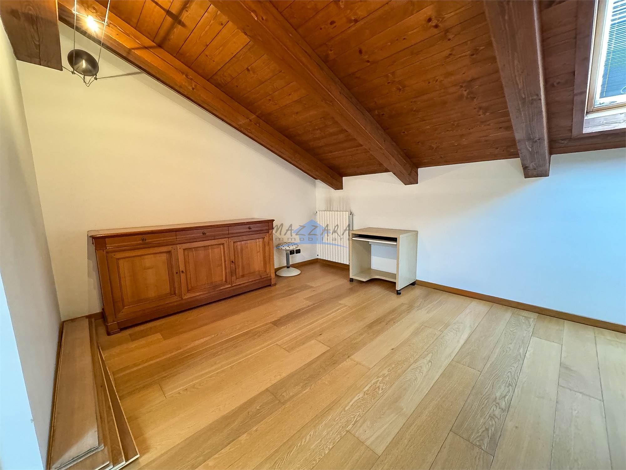 Locale unico di generose dimensioni, valorizzato dalle travi a vista, perfetto come terza camera, studio o area relax, completo di bagno e ripostiglio.