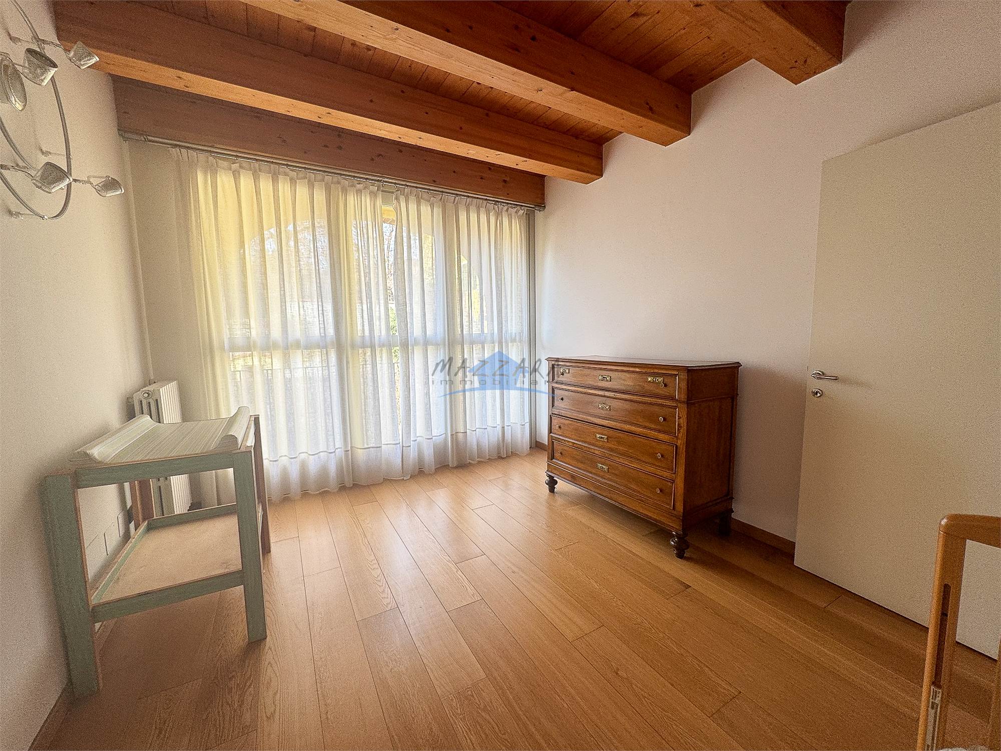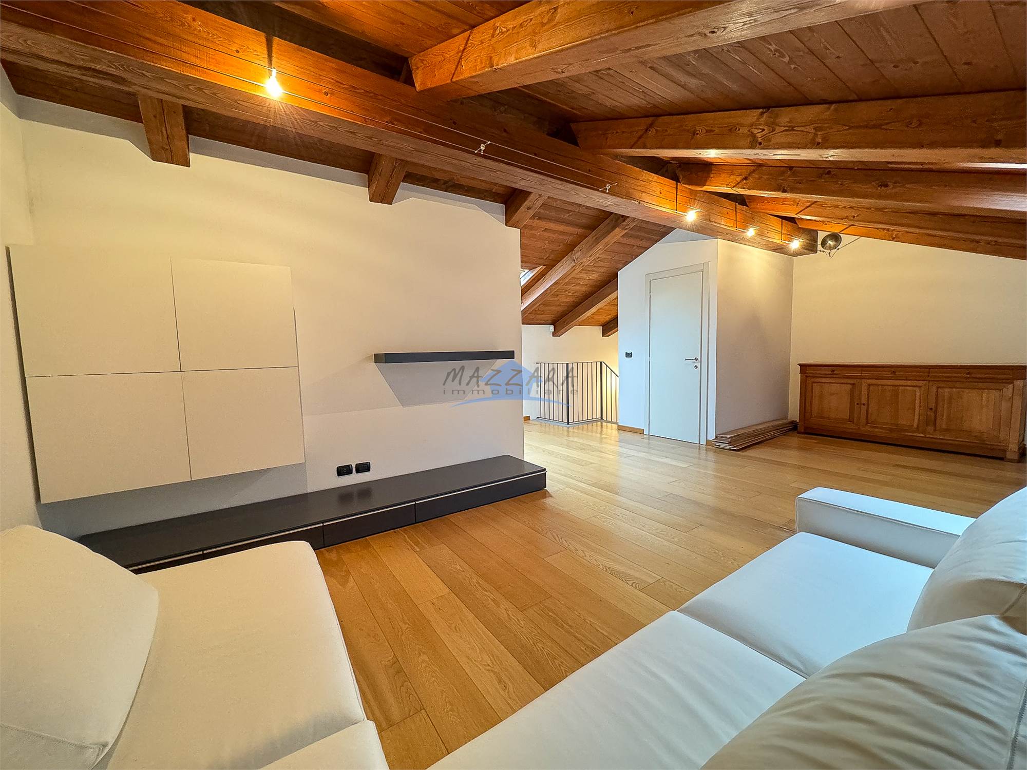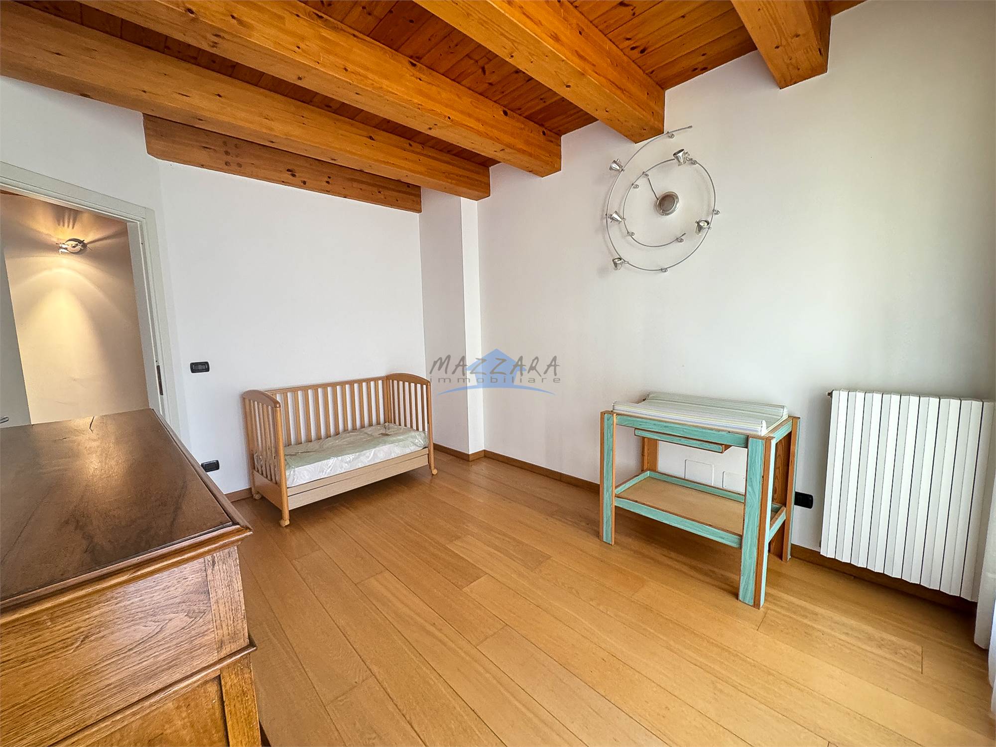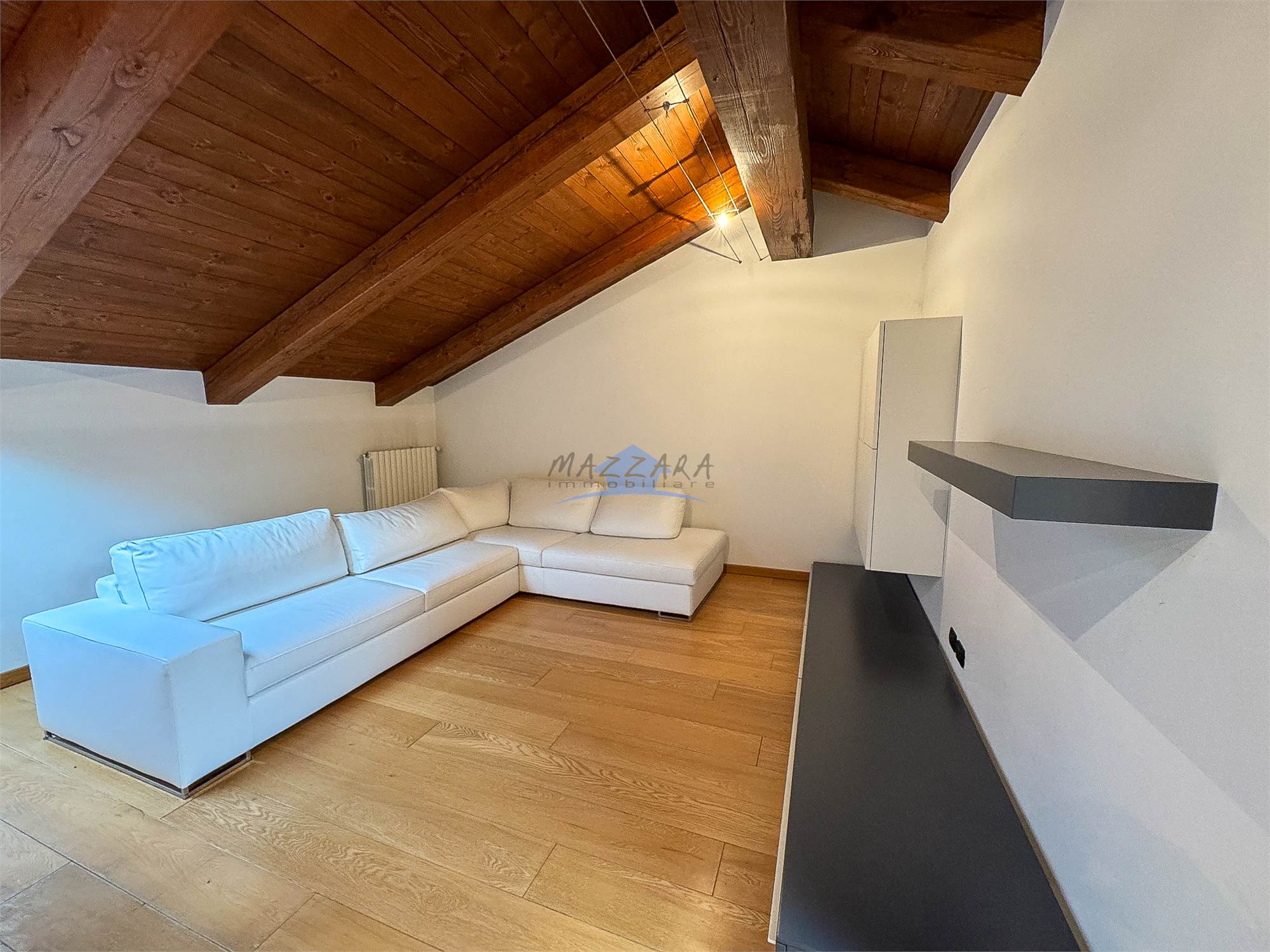 Locale unico di generose dimensioni, valorizzato dalle travi a vista, perfetto come terza camera, studio o area relax, completo di bagno e ripostiglio.