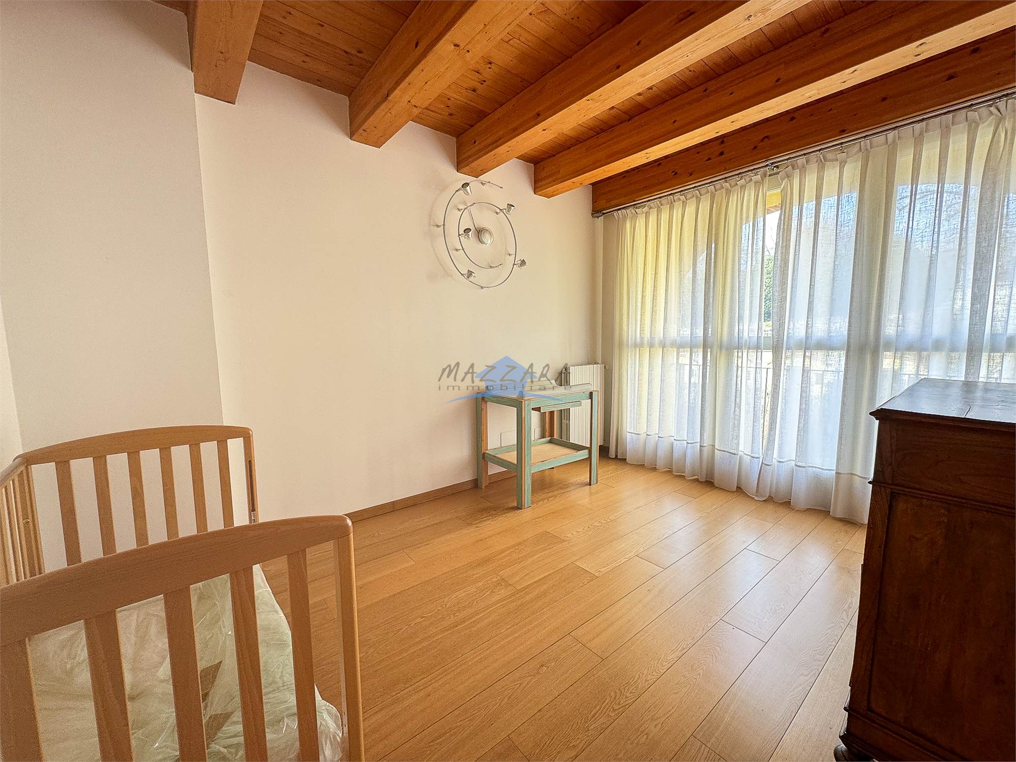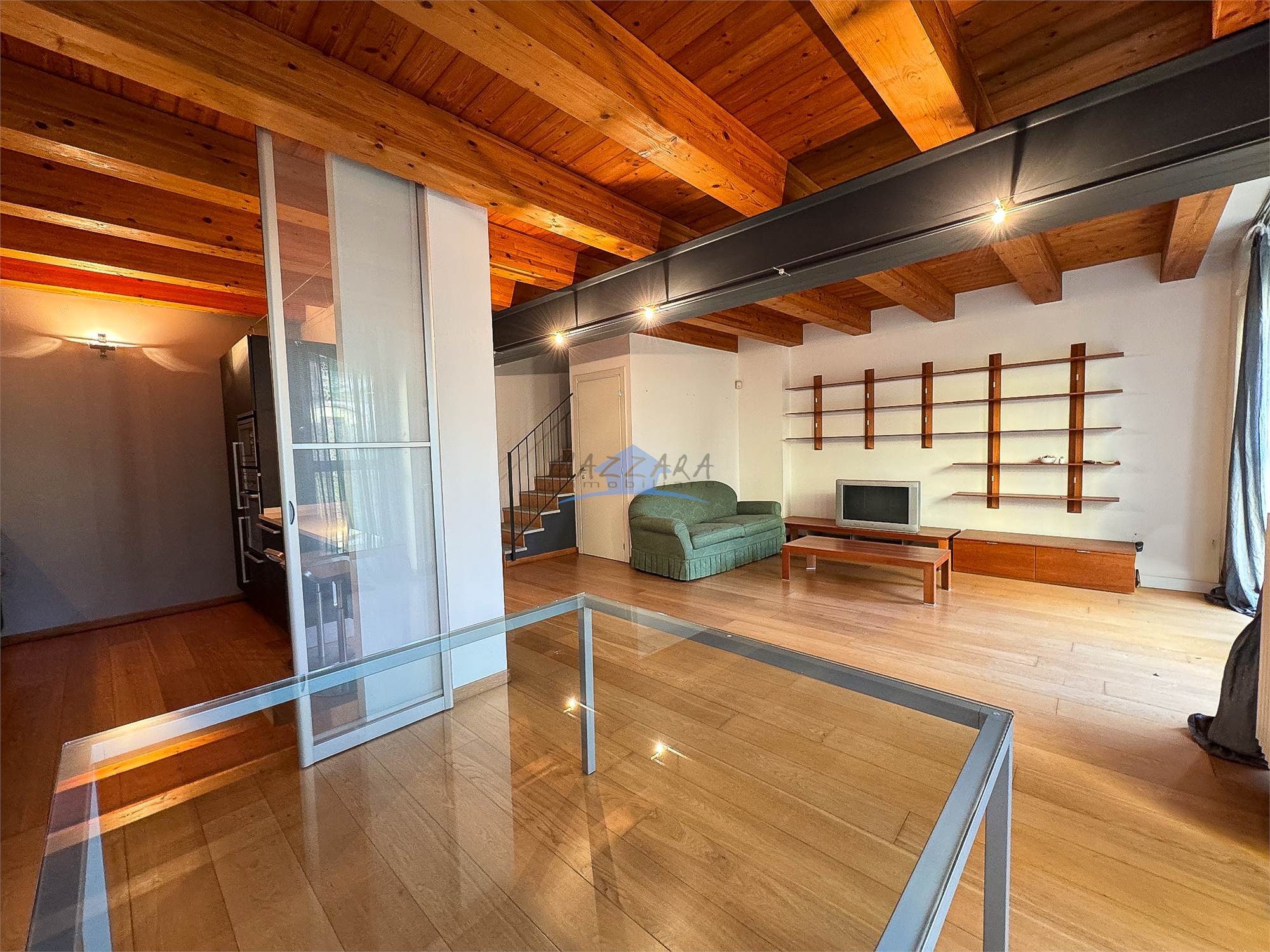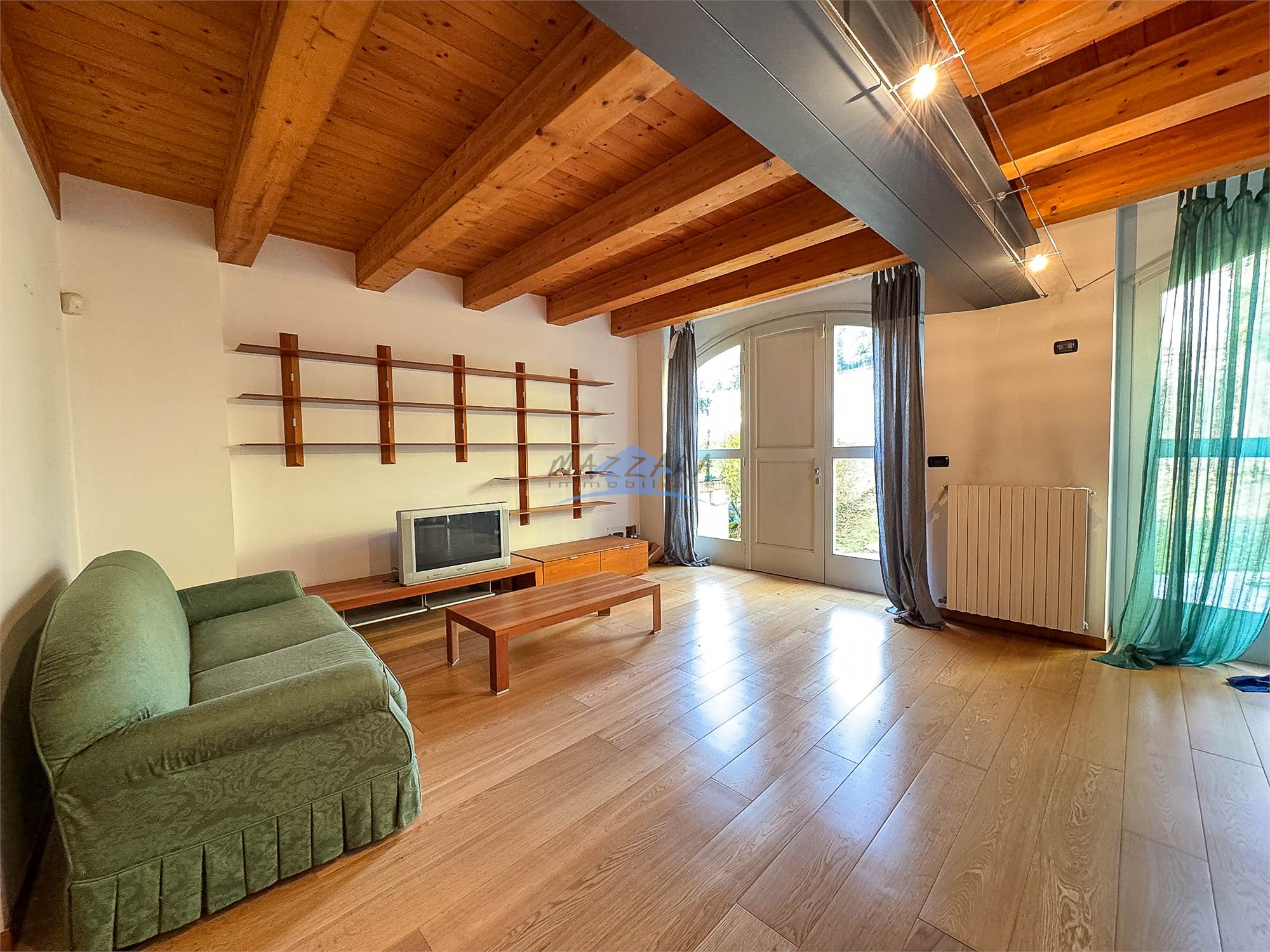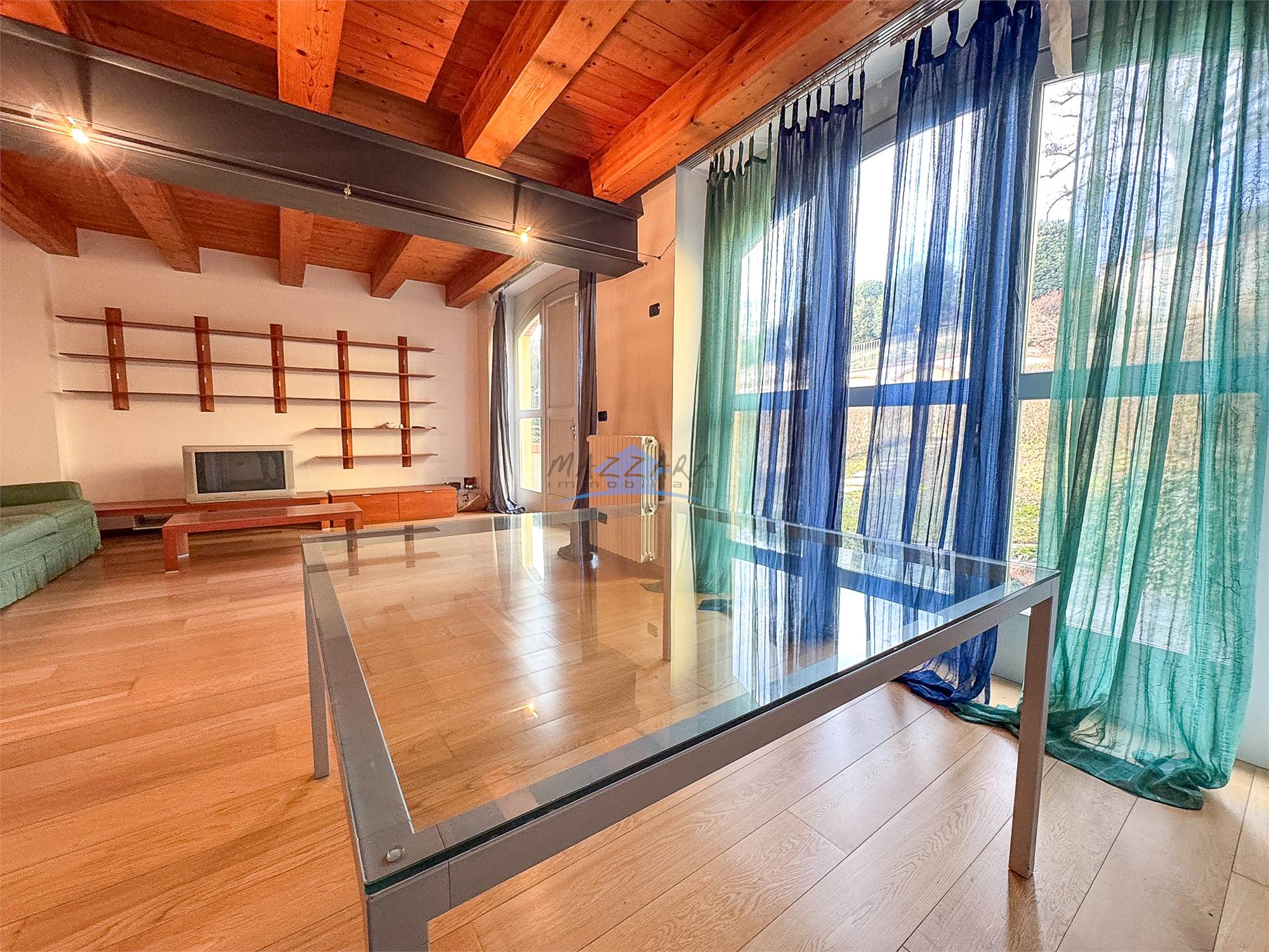Locale unico di generose dimensioni, valorizzato dalle travi a vista, perfetto come terza camera, studio o area relax, completo di bagno e ripostiglio.