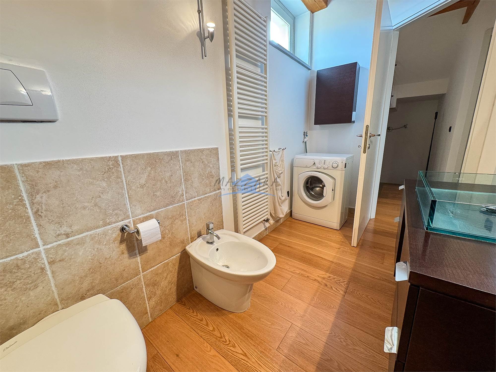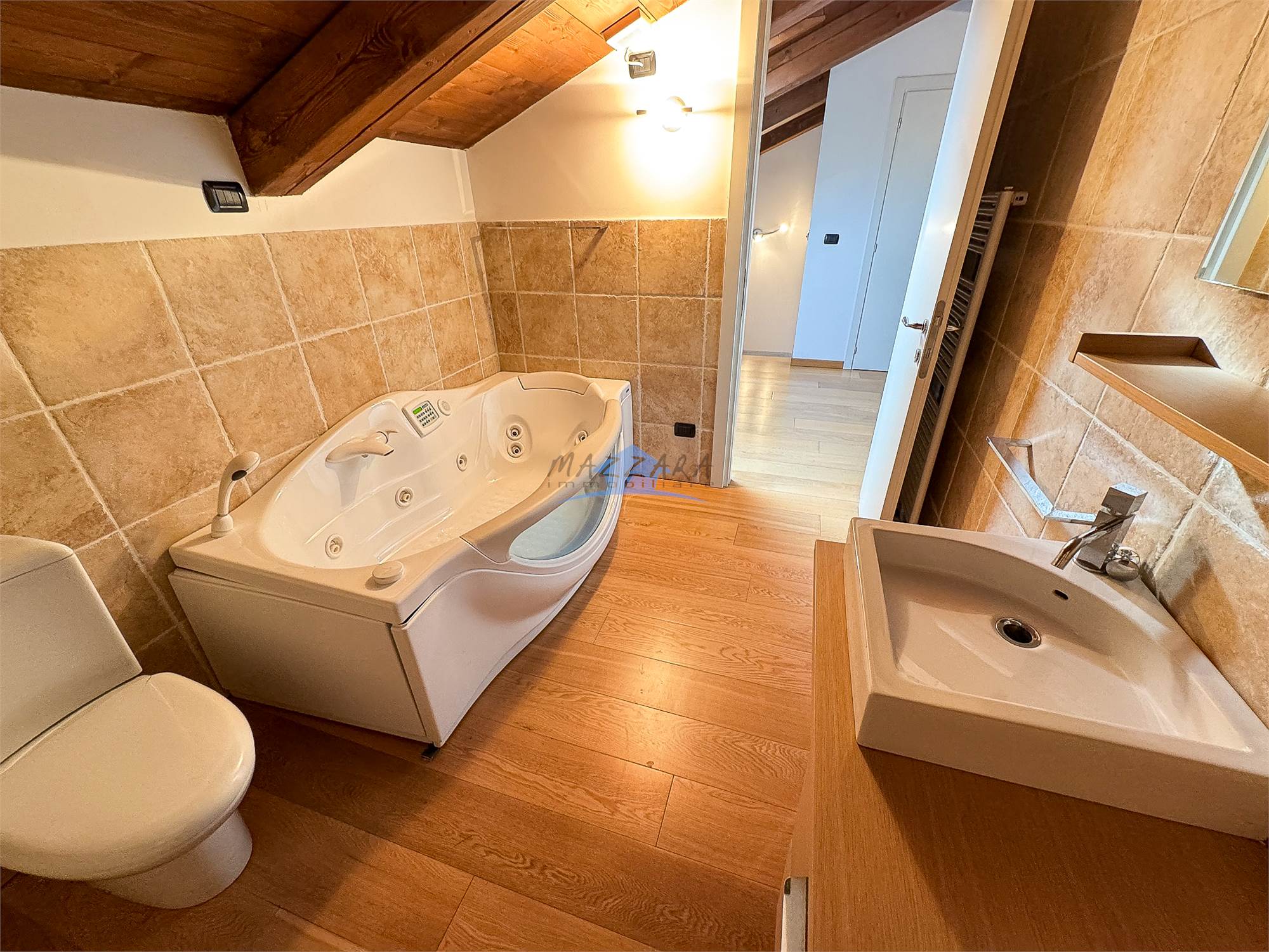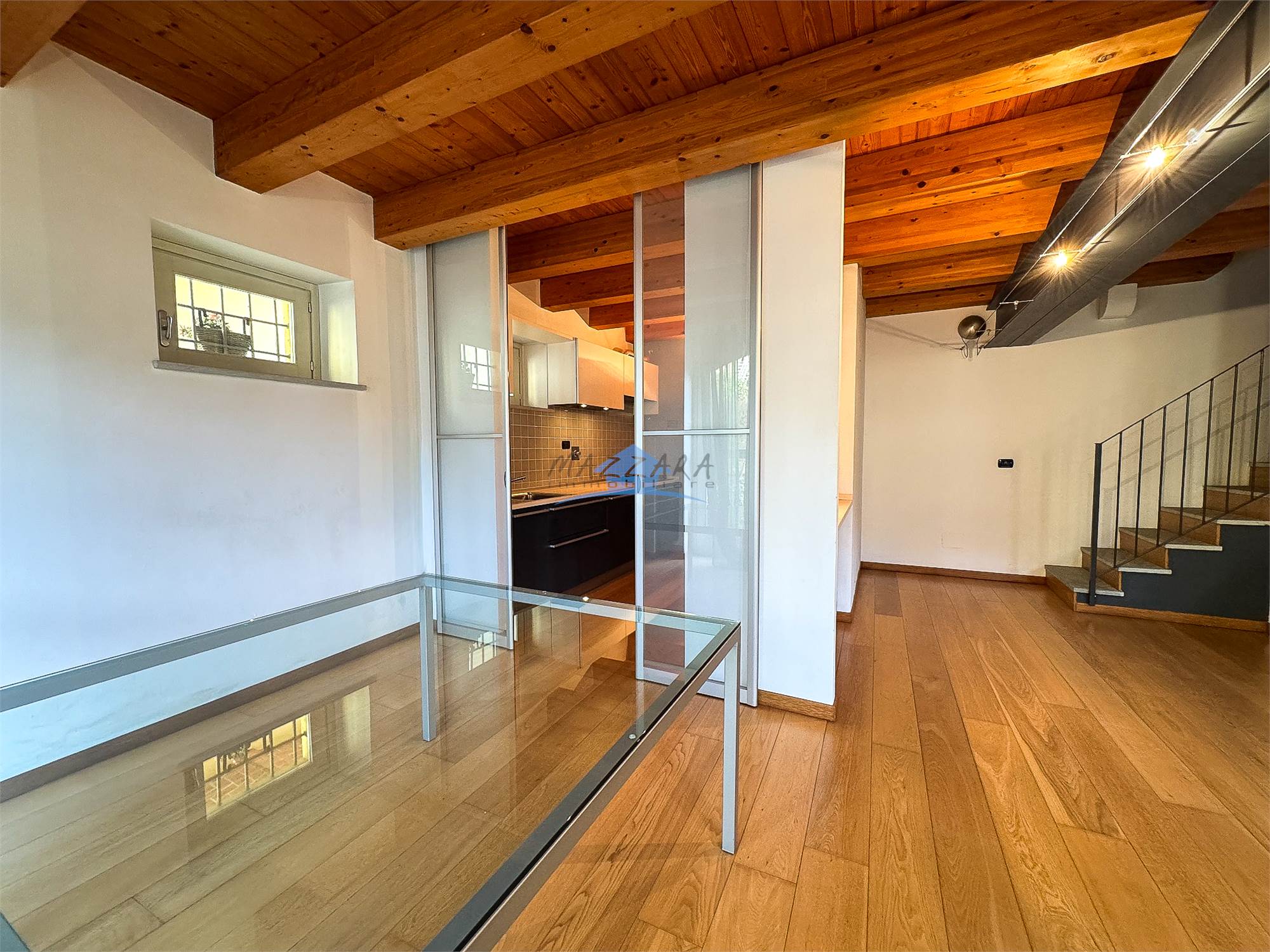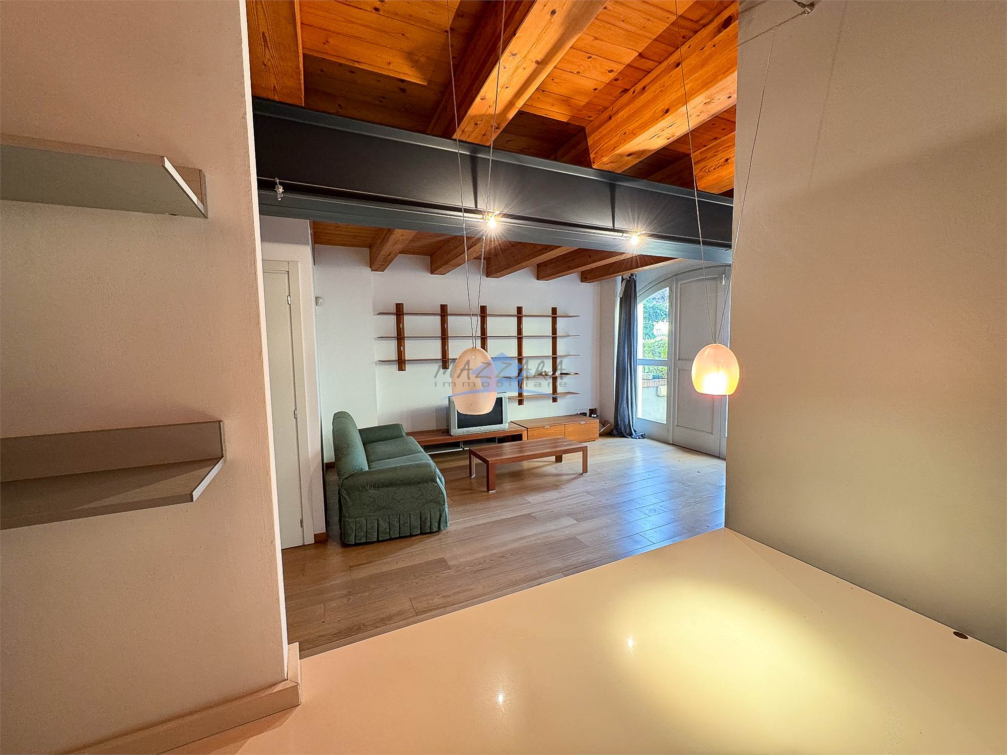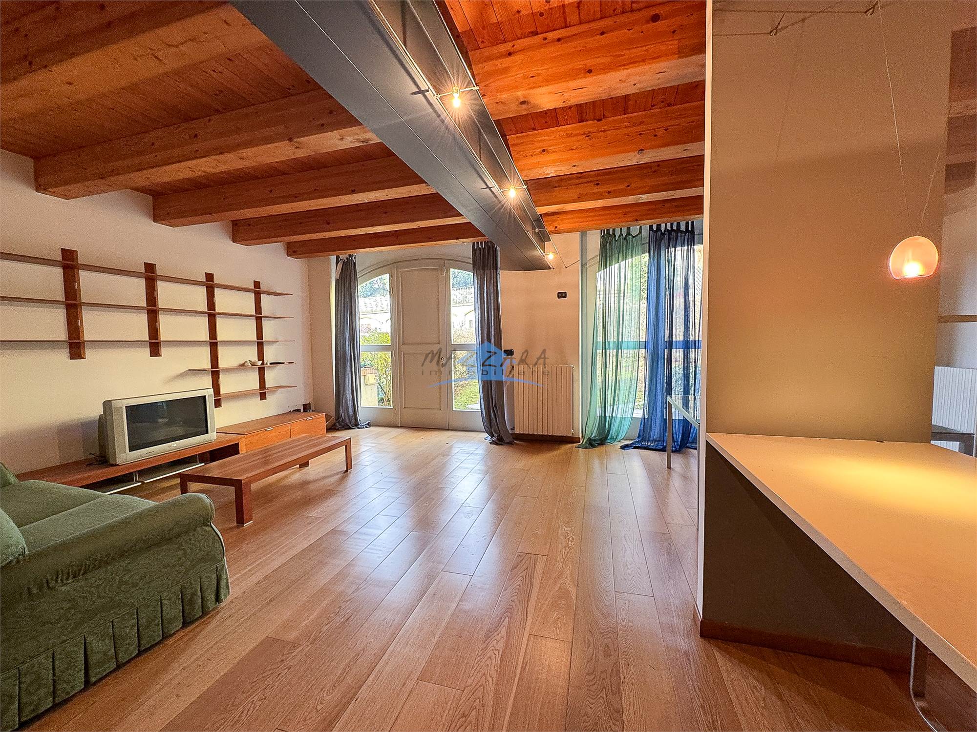 Locale unico di generose dimensioni, valorizzato dalle travi a vista, perfetto come terza camera, studio o area relax, completo di bagno e ripostiglio.