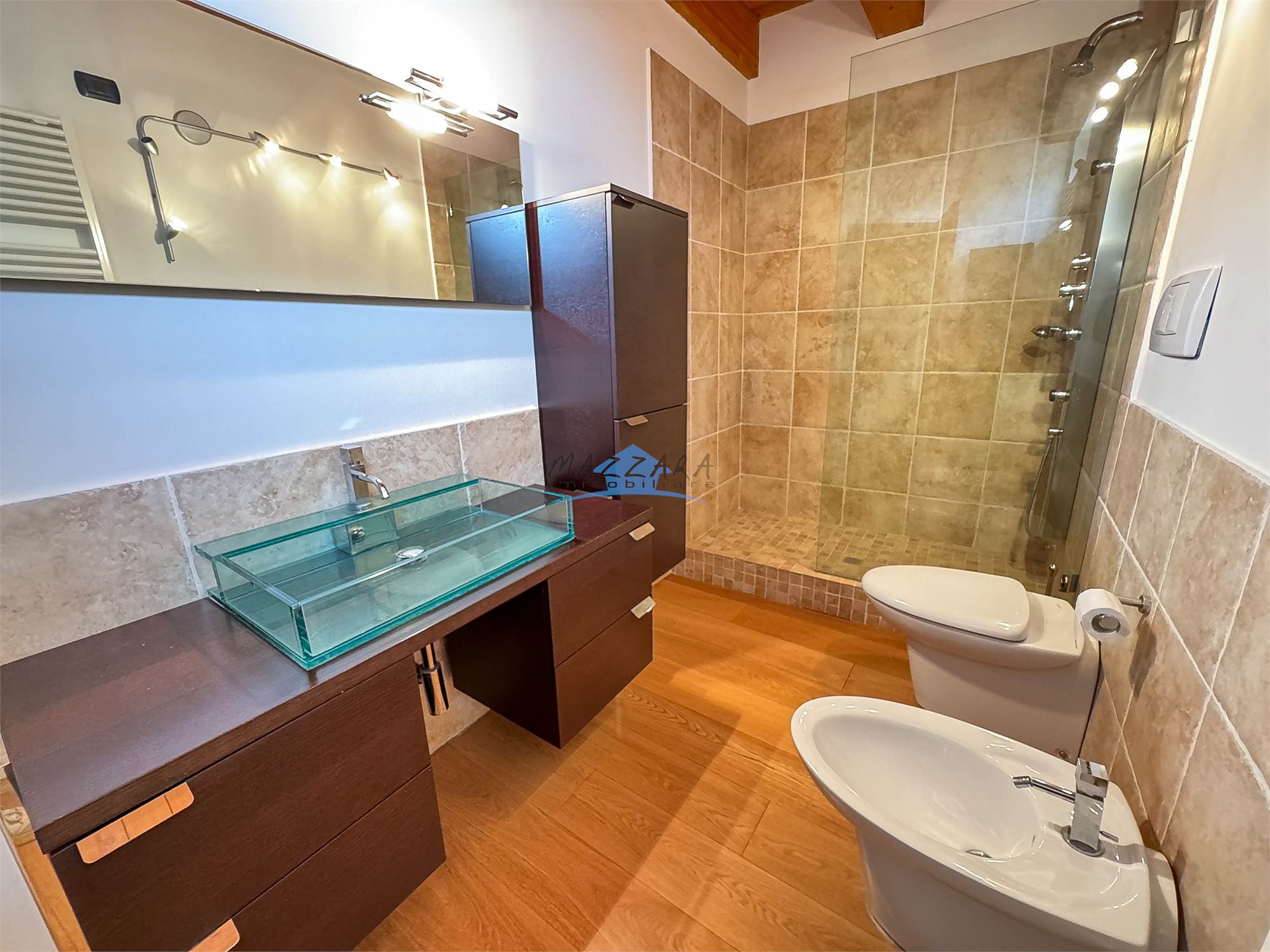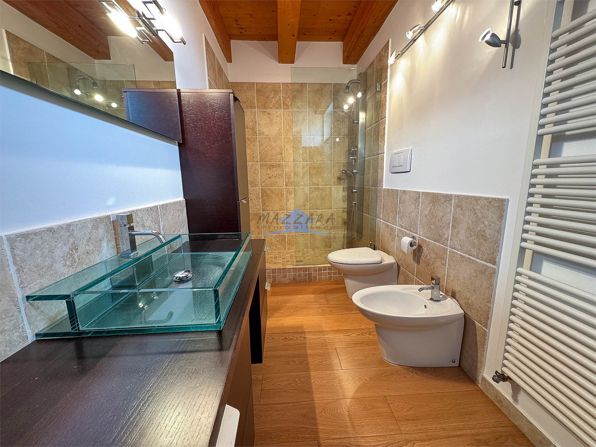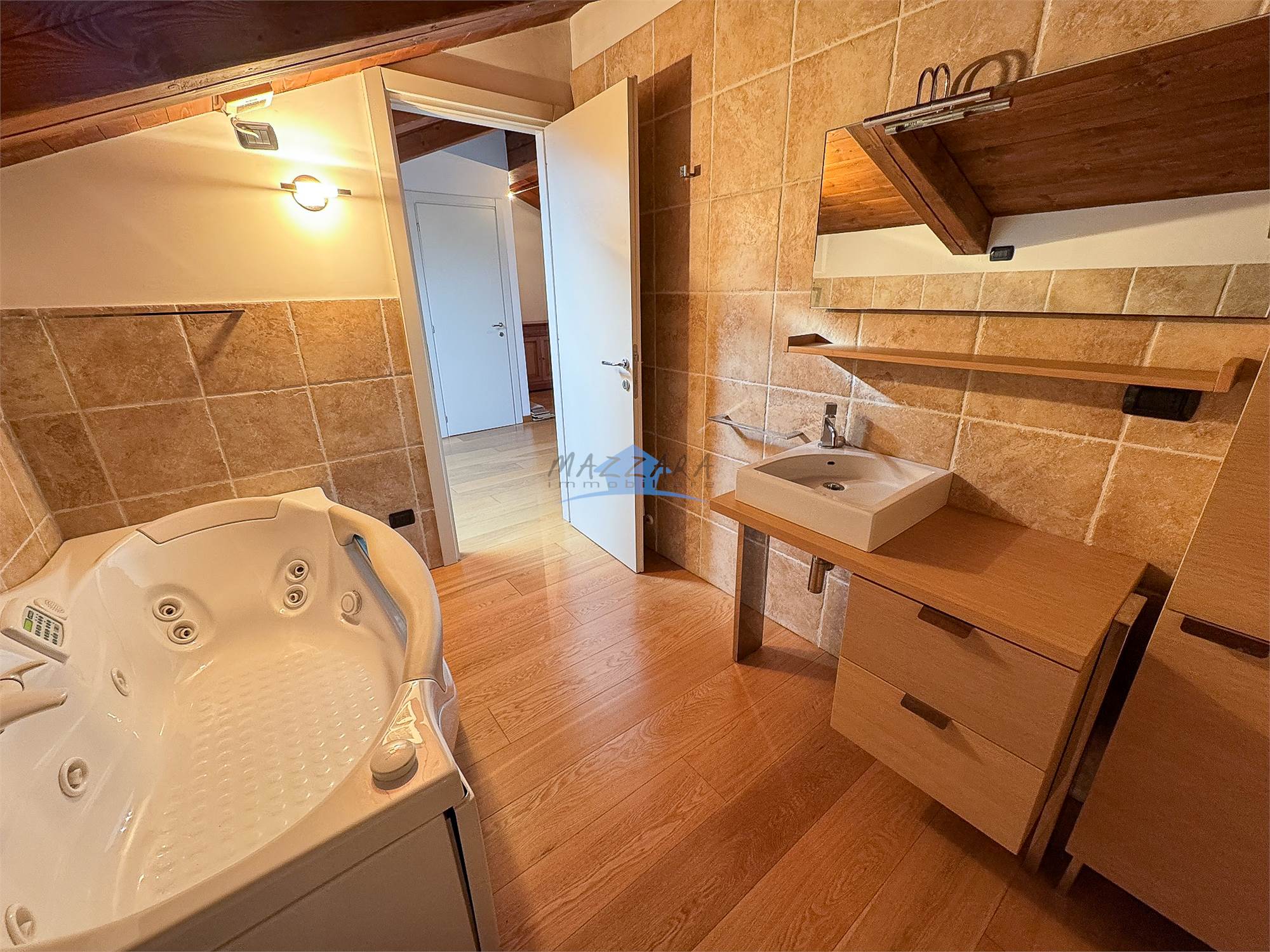 L’abitazione si distingue per la qualità delle finiture e per il perfetto equilibrio tra stile storico e comfort contemporaneo. Gli interni sono impreziositi da parquet in tutti gli ambienti, che conferisce calore e continuità agli spazi, e da soffitti con travi in legno a vista, elementi che esaltano il carattere autentico della dimora e ne sottolineano il pregio architettonico.
