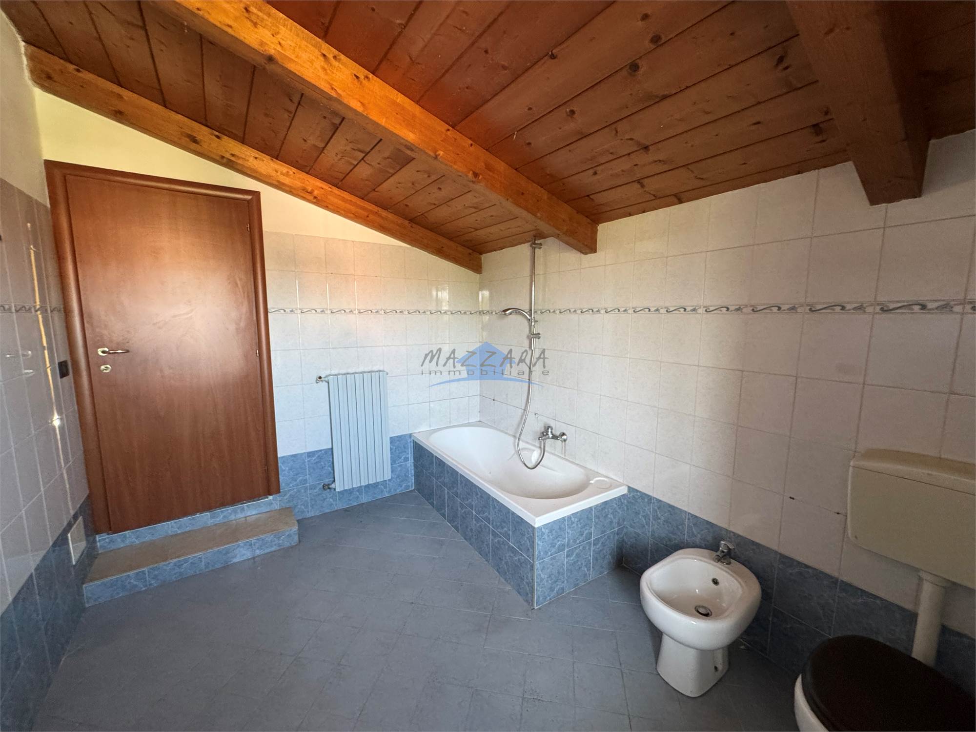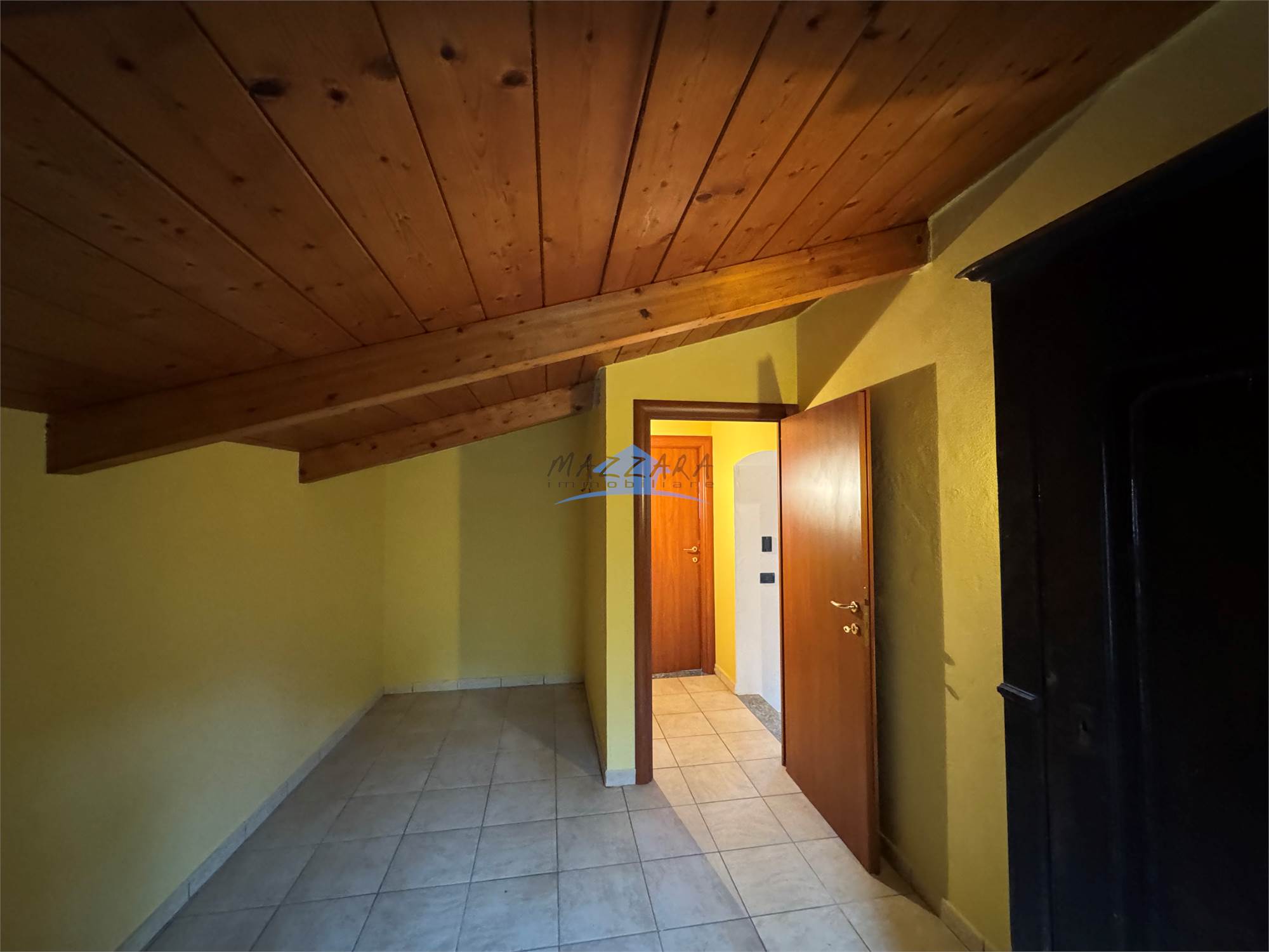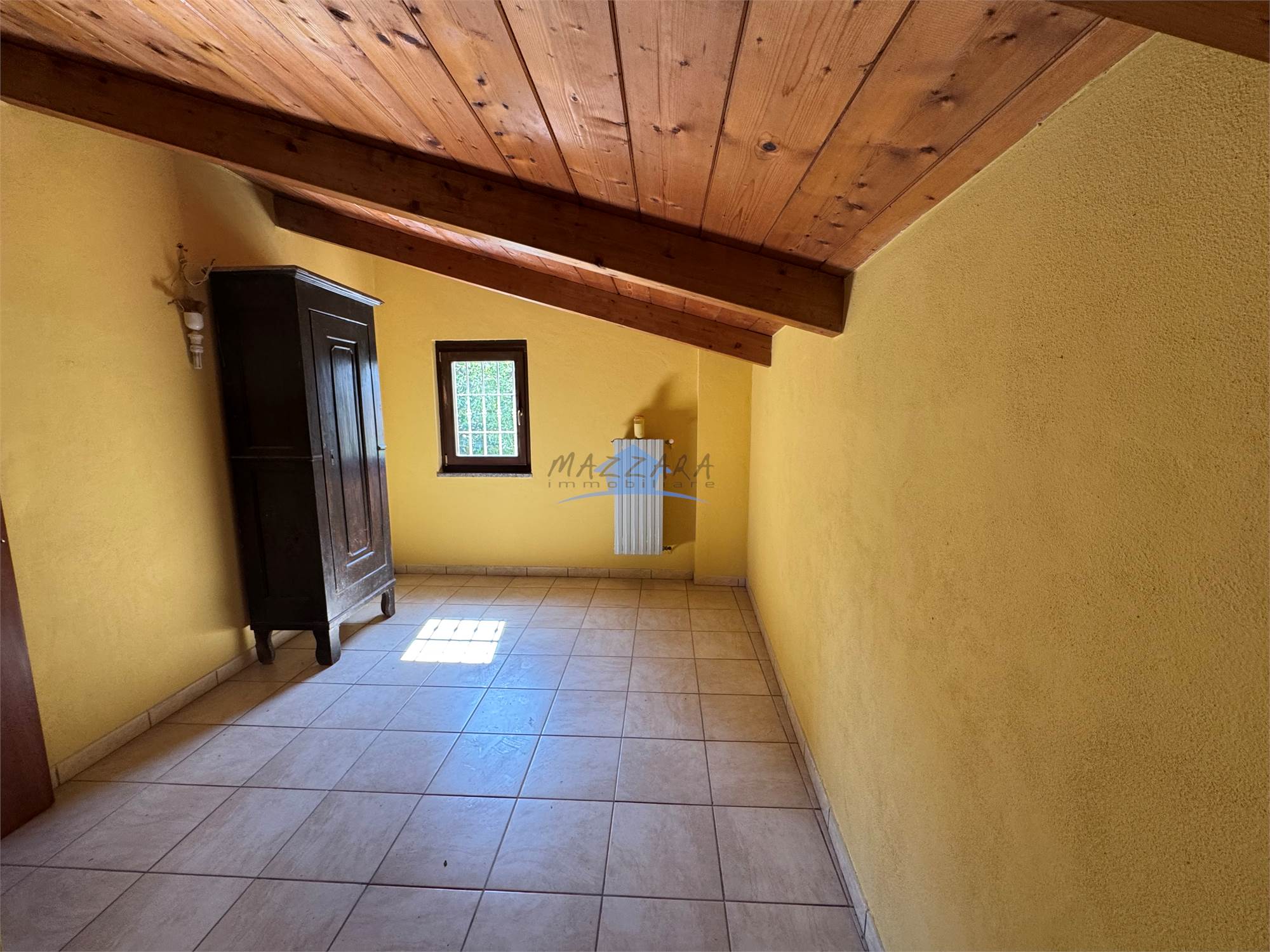 La scala centrale " tipica piemontese " ci conduce al piano superiore dove ci sono 2 grandi camere da letto molto luminose , uno studio o eventuale cabina armadi ( parte mansardata) un bagno e un balcone.
